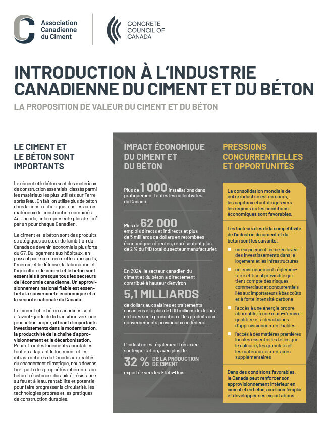 Il ne fait aucun doute que l’année 2026 continuera de nous mettre à l’épreuve, et si le passé ne prédit pas toujours l’avenir, il nous donne toutes les raisons d’être confiants. Nous faisons preuve d’ambition, nous restons confiants et nous sommes déterminés à tirer parti de la crise pour façonner un avenir plus solide pour le ciment et le béton au Canada.